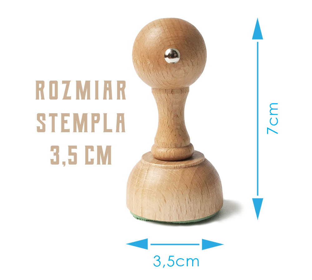 Wymiary stempla: średnica 3,5 cm; wysokość rączki 6,5 cm