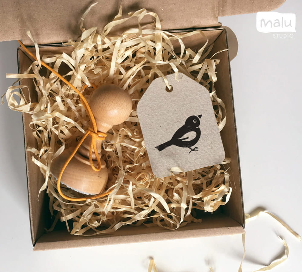 WRÓBELEK pieczątka drewniana